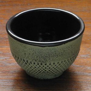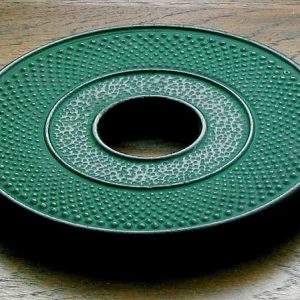 This is our largest cast iron tea pot. The small raised dots are nail heads in a traditional pattern called “arare” in Japanese.