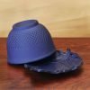 An intense blue iron tea cup enamelled on the inside and with an “arare” or “nail head” pattern on the exterior.