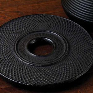 A cast iron tetsubin, teapot, with an embossed cherry tree design. The inside is enamelled to prevent rusting. It holds 0.9 litres, 30.5oz. and sits nicely on our 5.5″ diameter trivets.