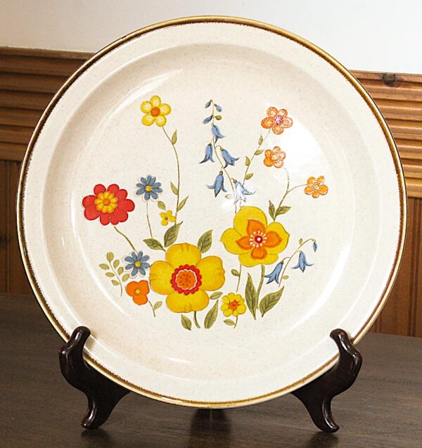 A 12″ chop plate ideal for serving meats and fish.The sloping sides contain the juices. The hand painted floral pattern brightens your table.