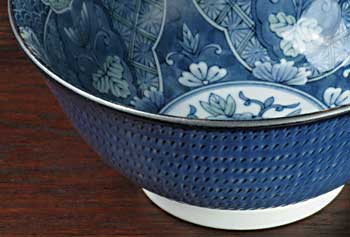 A 5 7/8″ bowl, blue with touches of blue-green and white in a traditional floral pattern.