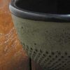 A cast iron tea cup with black enamel on the inside and a “nailhead” pattern on the exterior. This tea cup holds 3.5 ounces.