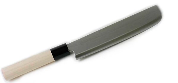 Japanese Nakiri knives are ideal for slicing fruits and vegetables. It’s a thin knife that works well as an all round kitchen chopper (but not as a cleaver so don’t use it on frozen foods or hard root vegetables).