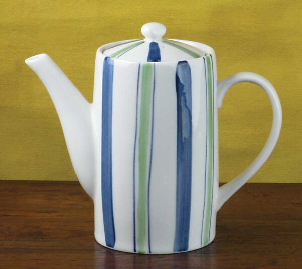 Retro Tea Pot – Blue & Green Stripes